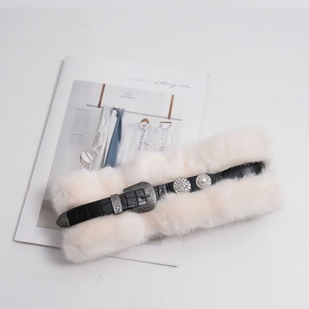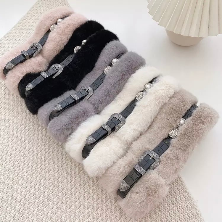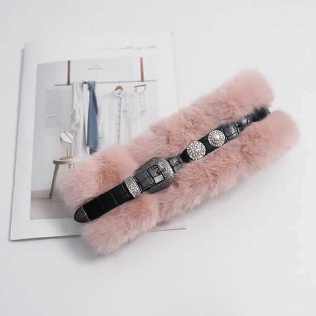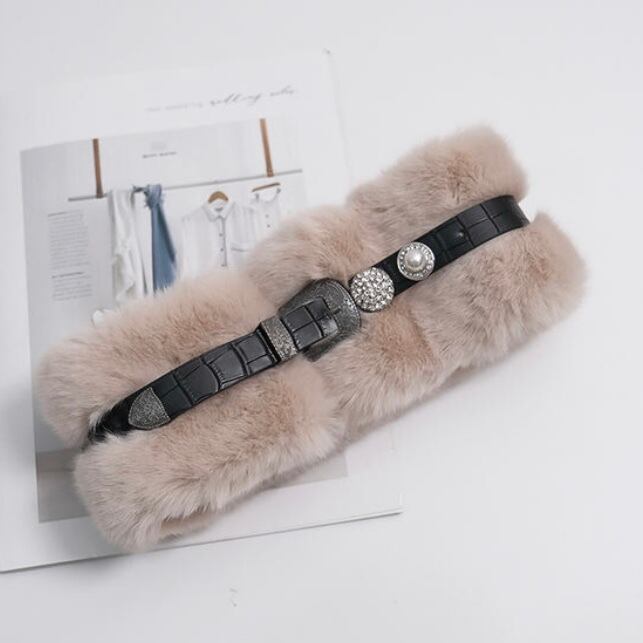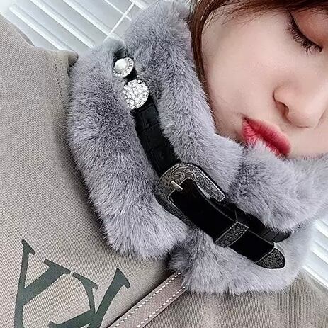《ティーン》革ベルトふわふわネックウォーマー